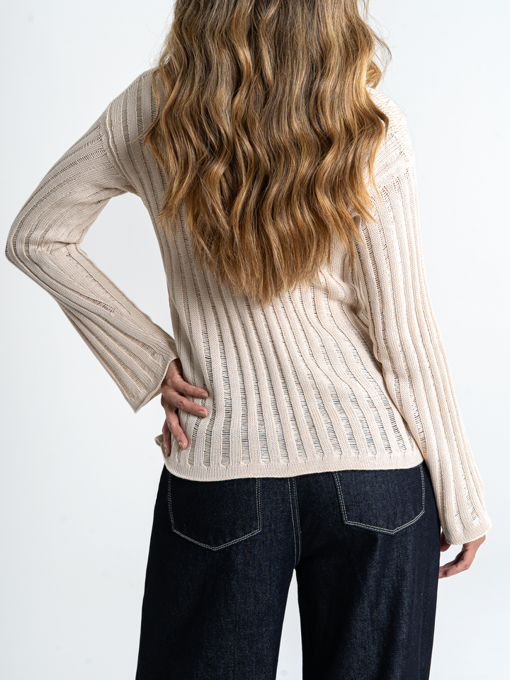 Buzo tejido, con botones delanteros, tono arena, silueta amplia