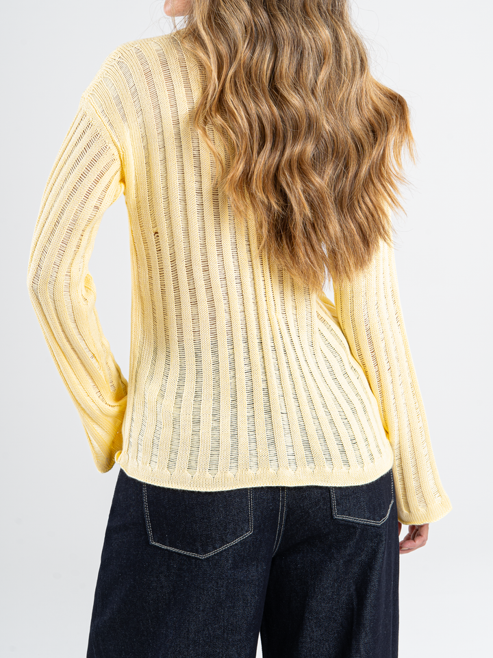 Buzo tejido, con botones delanteros, tono amarillo, silueta amplia