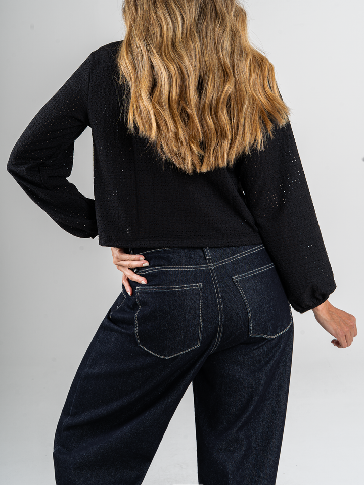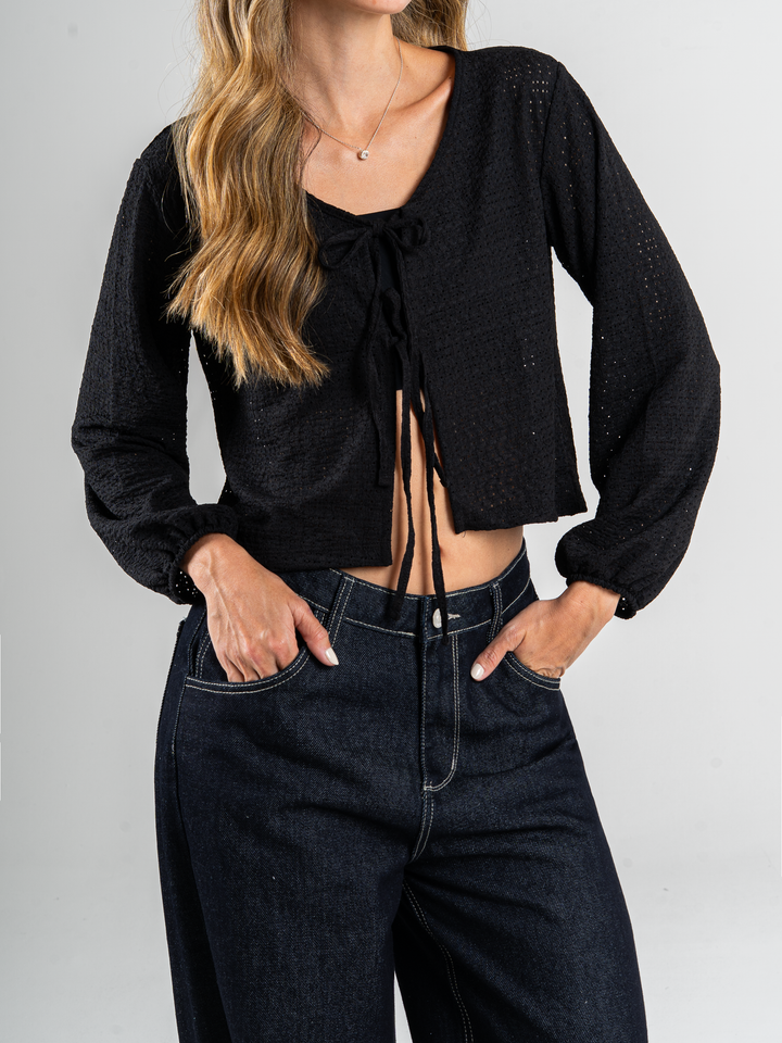 Ref: 0610504 Top manga larga, stretch, amarre delantero, tono negro