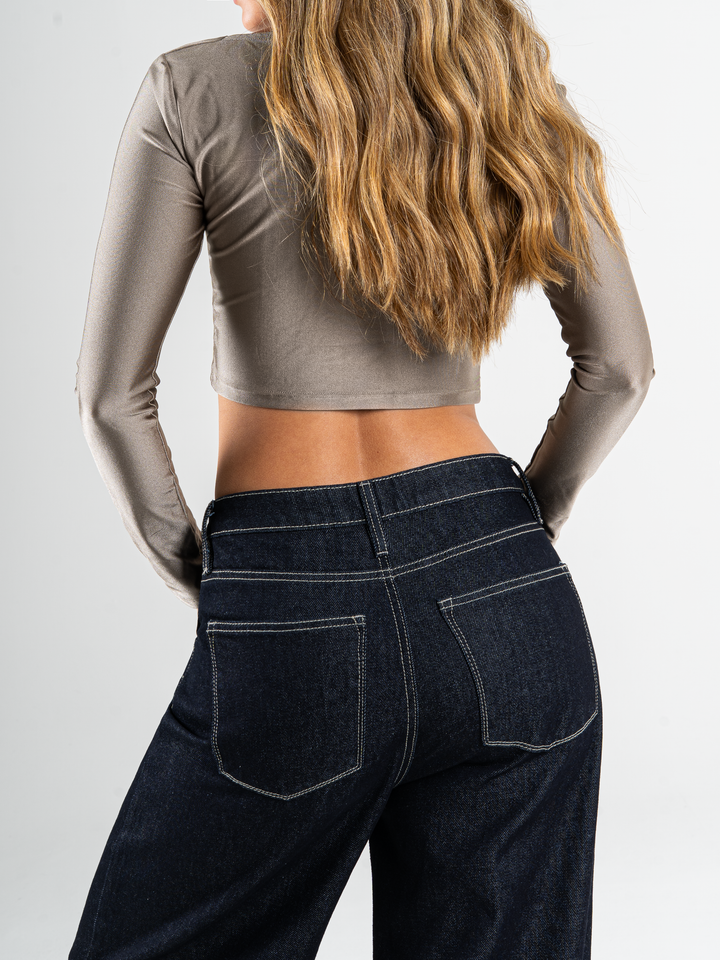El tono hermoso. El detalle es novedoso aunque en jeans soy muy clásica siento que esta referencia combina muy bien lo clásico del color con el detalle de la pretina.