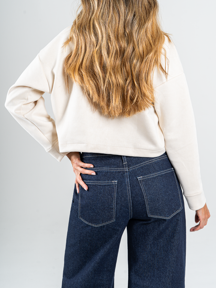 Ref: 065883 Jean wide leg, tiro medio, con cortes, rígido, tono azul oscuro