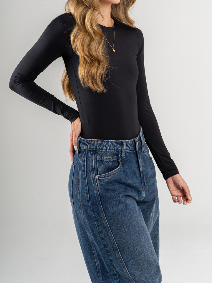 Ref: 0610534 Body stretch, manga larga, cuello redondo, tono negro
