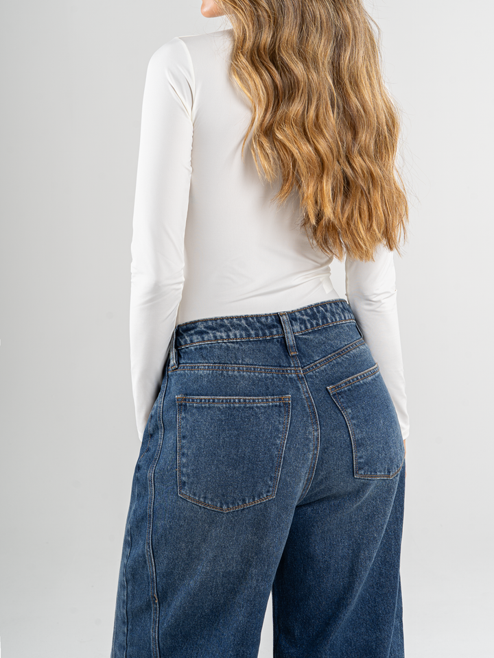 Ref: 065873 Jean wide leg, tiro medio, rígido, tono azul medio
