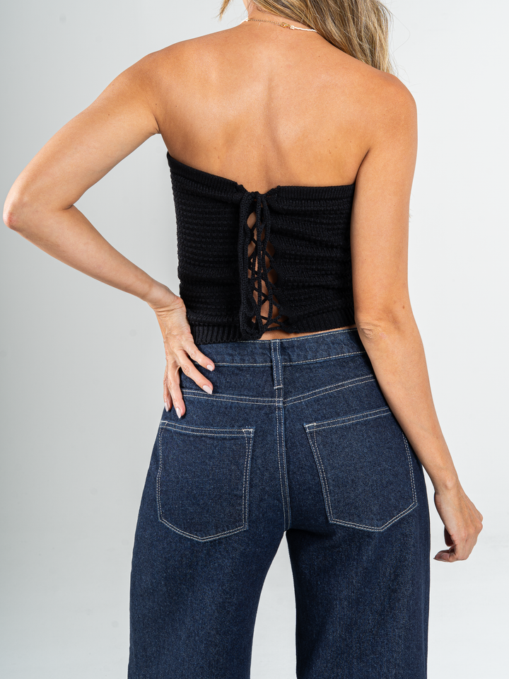 Ref: 0610544 Top tejido straple, amarre en espalda, tono negro.