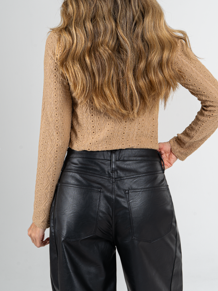 Top manga larga, tejido, botones delanteros, tono camel