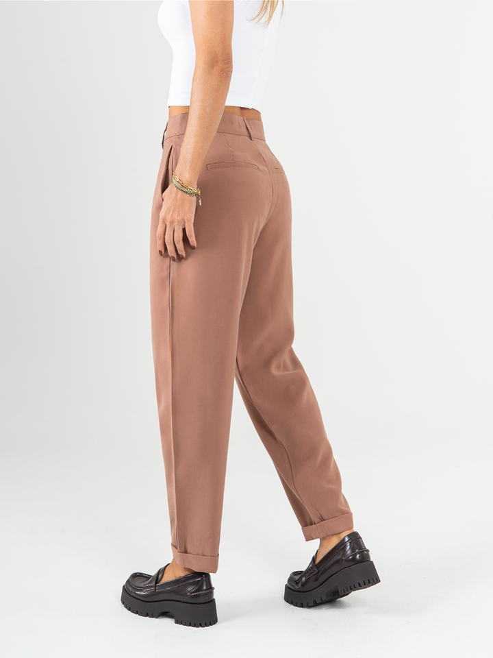 Ref: 0620008 Pantalón slouchy, sin prense, tejido plano liviano, tiro alto, tono cafe.