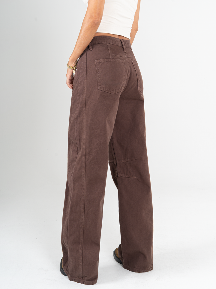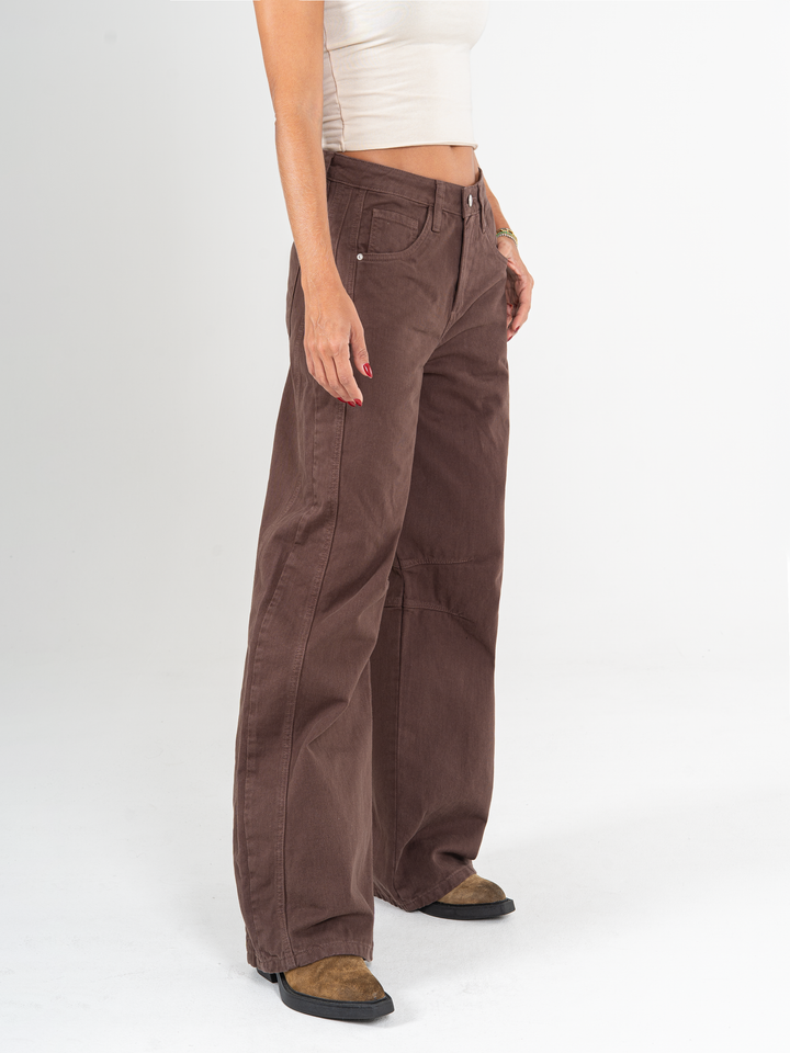 Ref: 065586 Jean wide leg, tiro medio, con cortes, rígido, tono café.