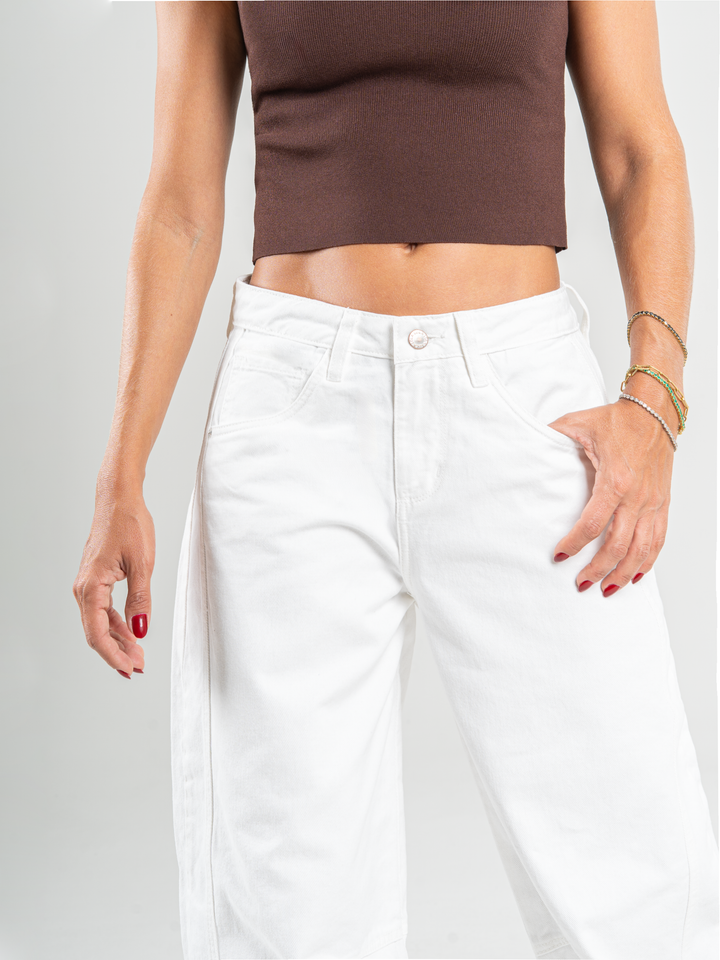 Ref: 0620041 Pantalón wide leg, rígido, tiro alto, corte en costado, tono ivory