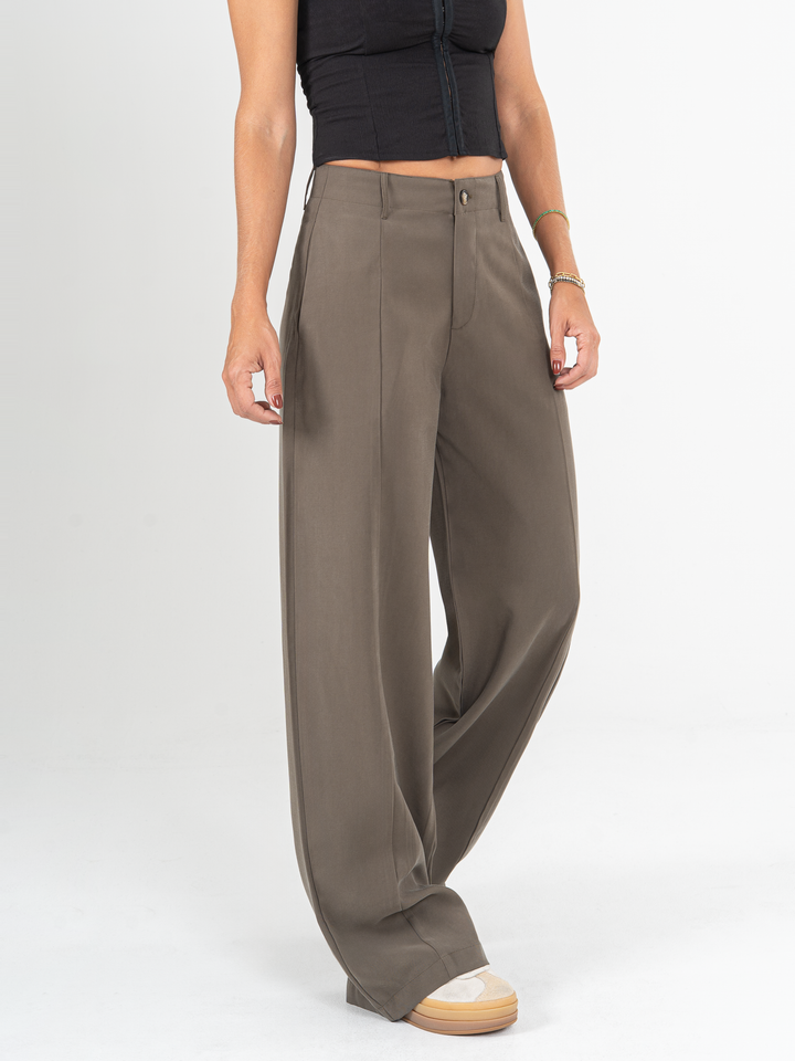 Ref: 069999 Pantalón slouchy, sin prense, tejido plano liviano, stretch, tiro alto, detalle en pretina, tono verde.