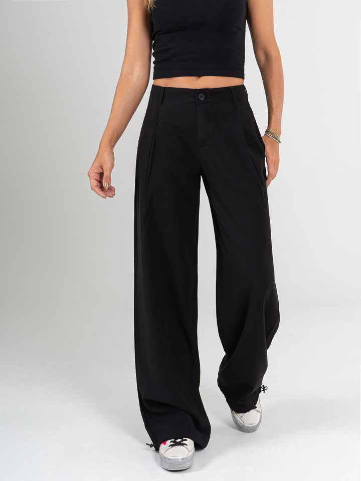 Ref: 0620113 Pantalón wide leg, tejido plano liviano, tiro alto, ajustador en bota, tono negro