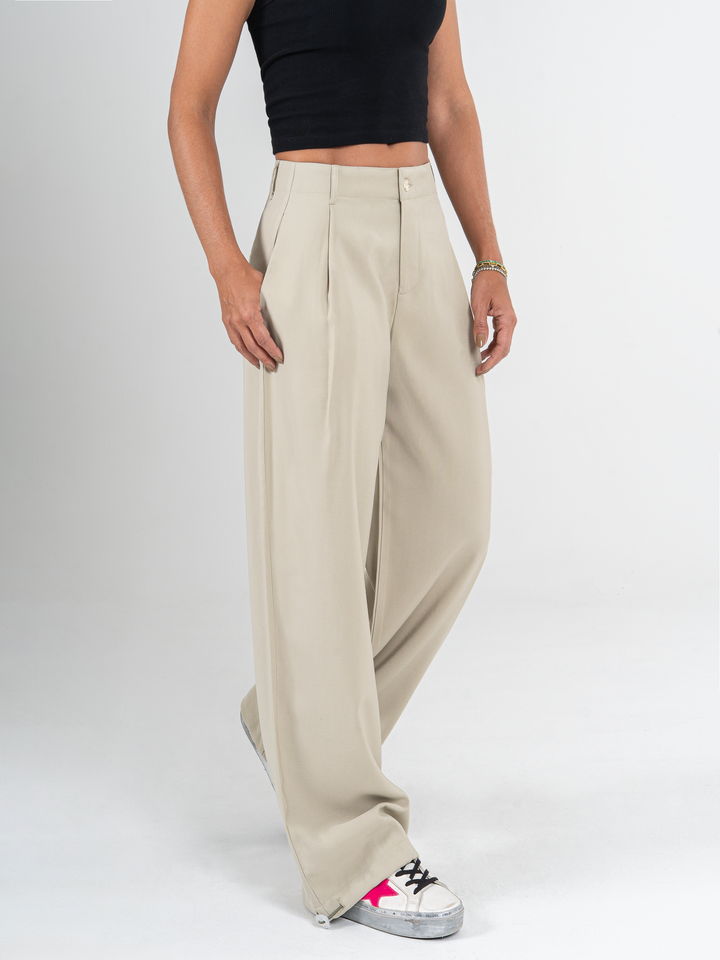 Ref: 0620115 Pantalón wide leg, tejido plano liviano, tiro alto, ajustador en bota, tono verde