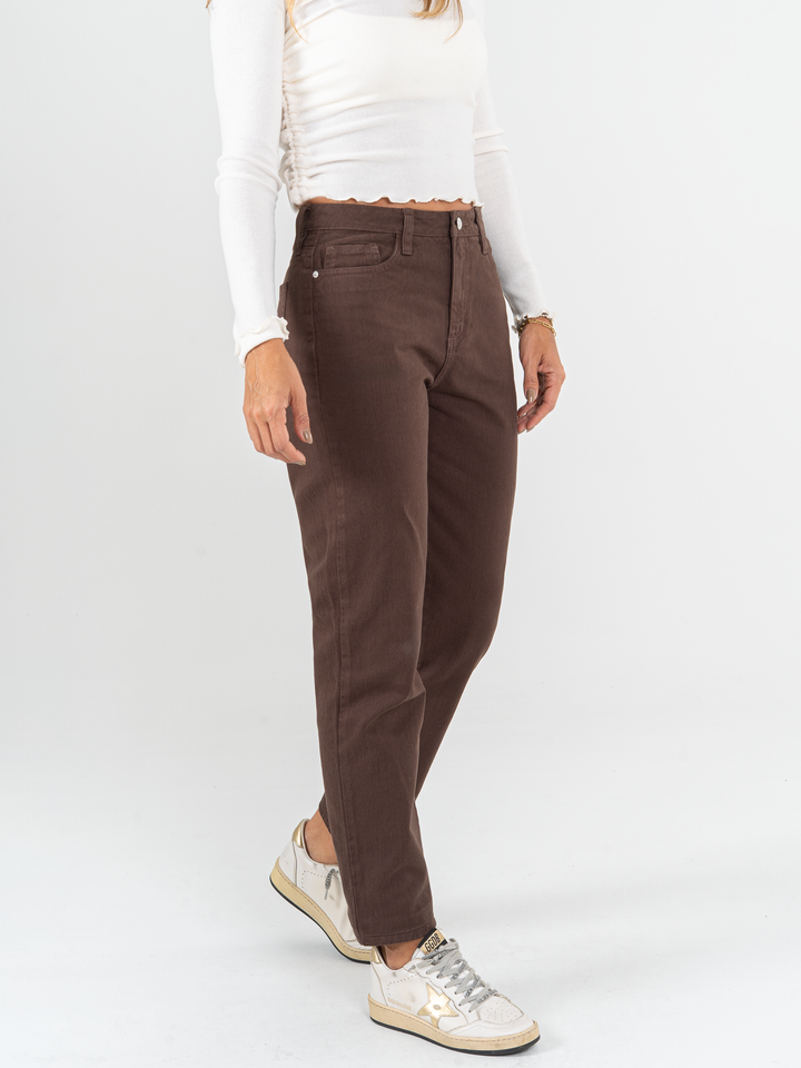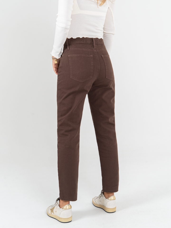 Ref: 0620181 Pantalón mom fit, rígido, tiro alto, tono cafe