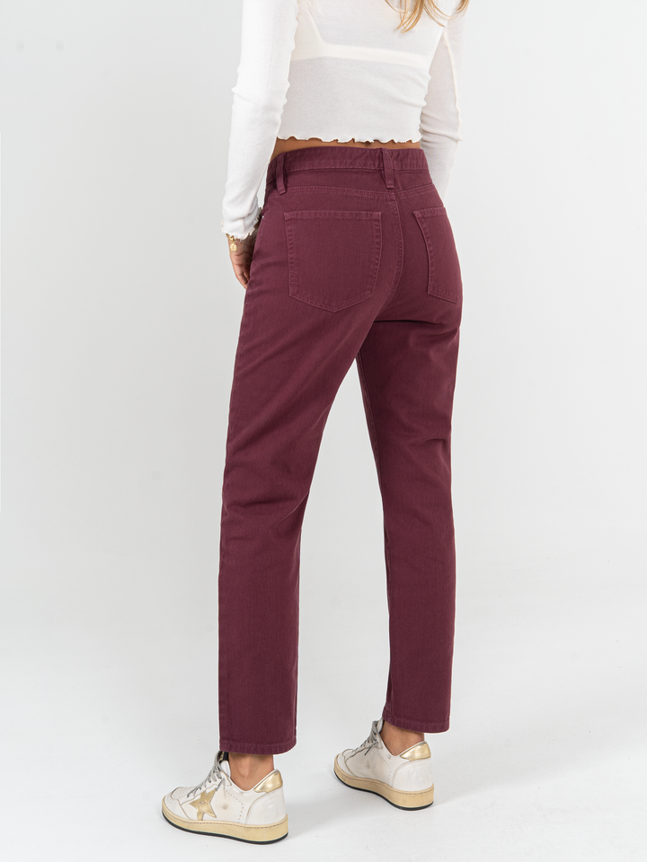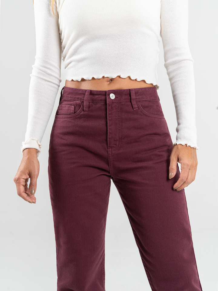 Ref: 0620201 Pantalón mom fit stretch, tiro alto, tono vino tinto.
