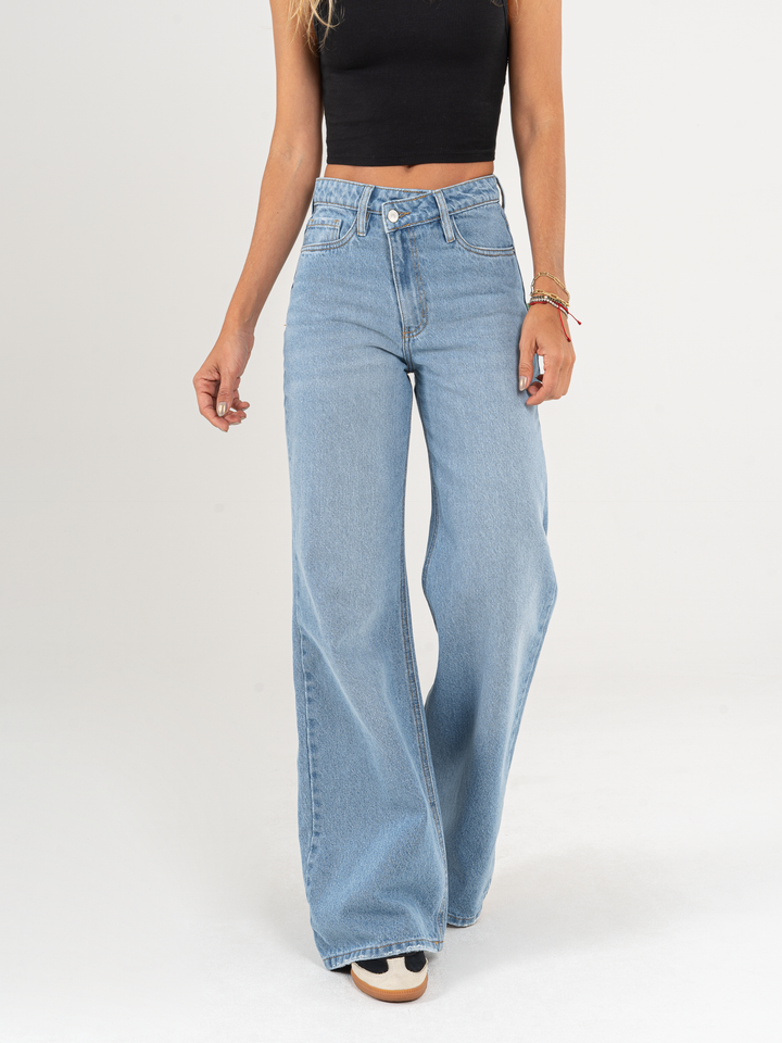 Ref: 065873 Jean wide leg, tiro medio, rígido, tono azul medio