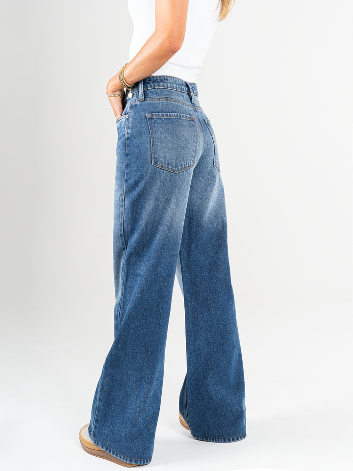 Ref: 065883 Jean wide leg, tiro medio, con cortes, rígido, tono azul oscuro