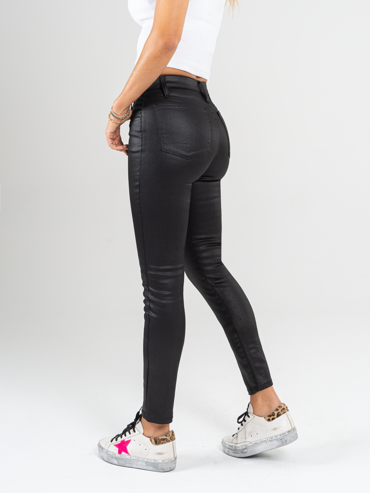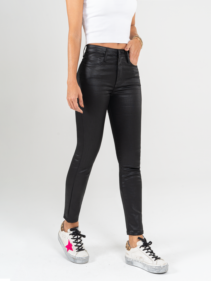 Ref: 066024 Pantalón skinny, stretch, tiro alto, tono negro, efecto encerado