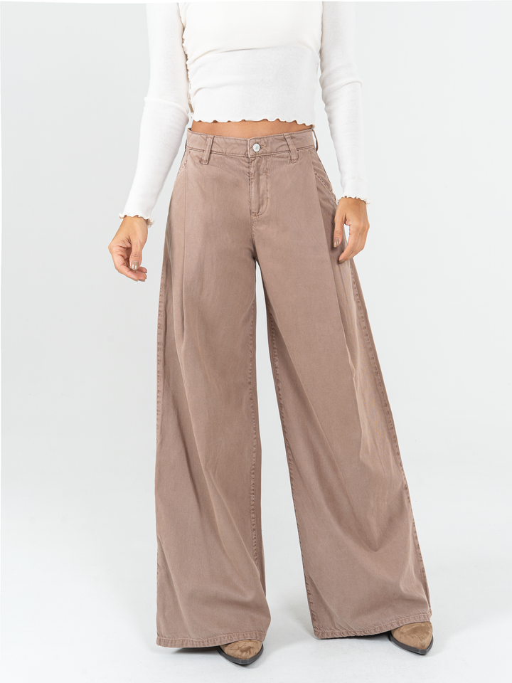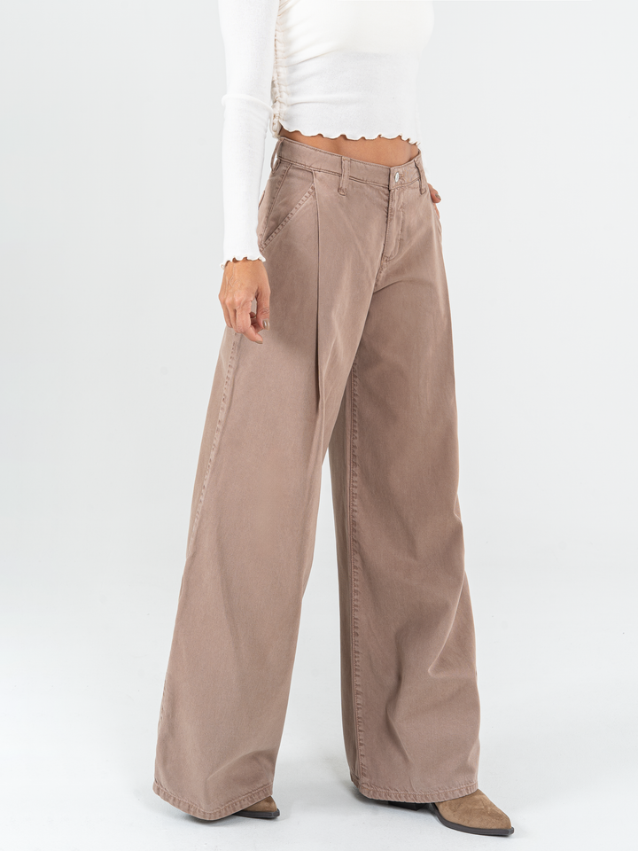 Ref: 069922 Pantalón palazzo, rígido, prenses, tiro alto, tono café con desgaste
