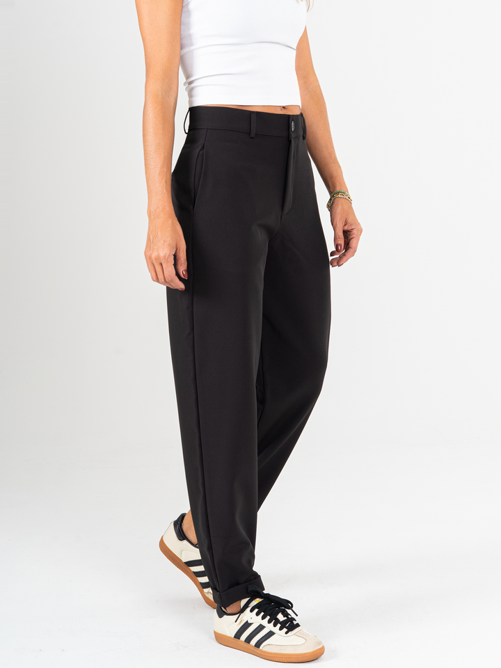 Ref: 069961 Pantalón slouchy, sin prense, tejido plano liviano, stretch, tiro alto, tono negro.